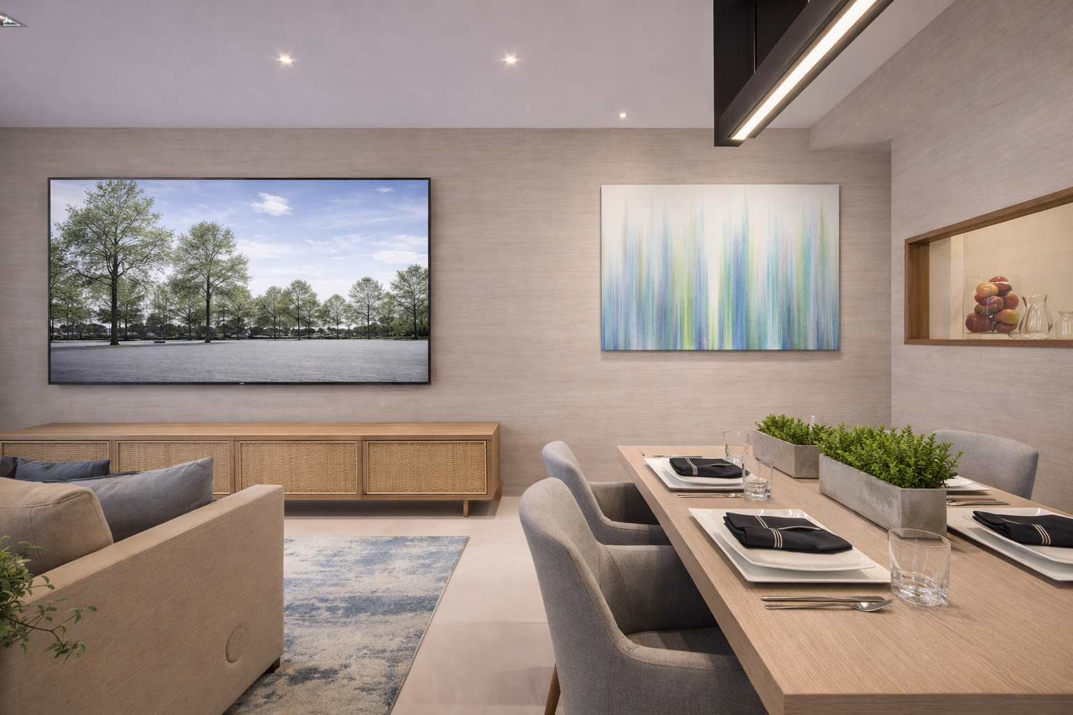 What stood out in the final result was the consistency in the use of natural materials throughout the home. Having a dedicated space with ample room for the clients’ collectibles was especially important, and it was thoughtfully integrated into the overall design.