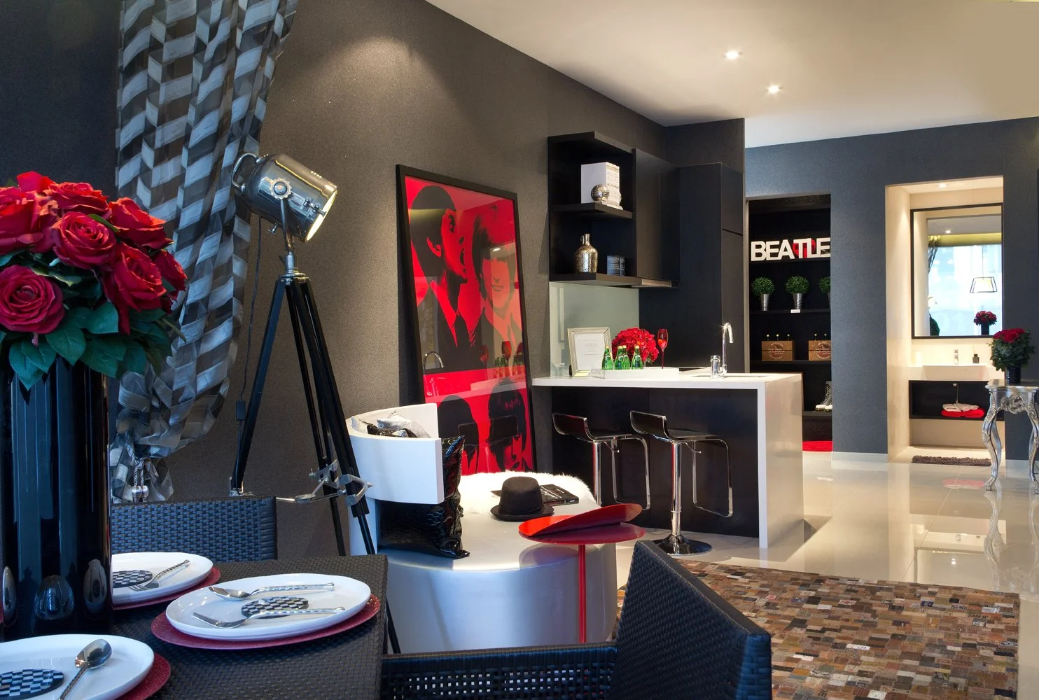 The designer's thoughtsThe intention was to let personality lead the space. So rather than hold back because of the size, we leant into it—treating the home almost like a gallery. The walls became a canvas for oversized posters and bold pop art pieces, allowing the art to define the atmosphere from the moment you step in.