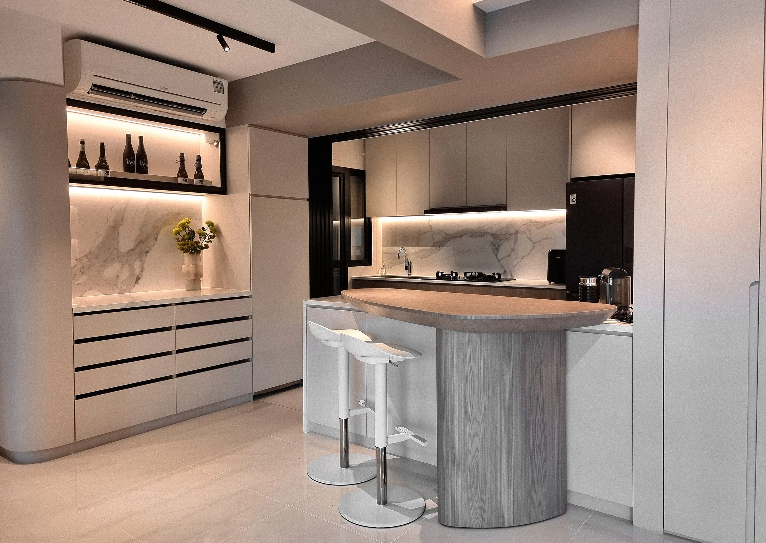Sleek cabinetry, ample storage, synchronised sliding doors to enclose my kitchen and a clean, minimalist design make it so stylish and highly functional.”