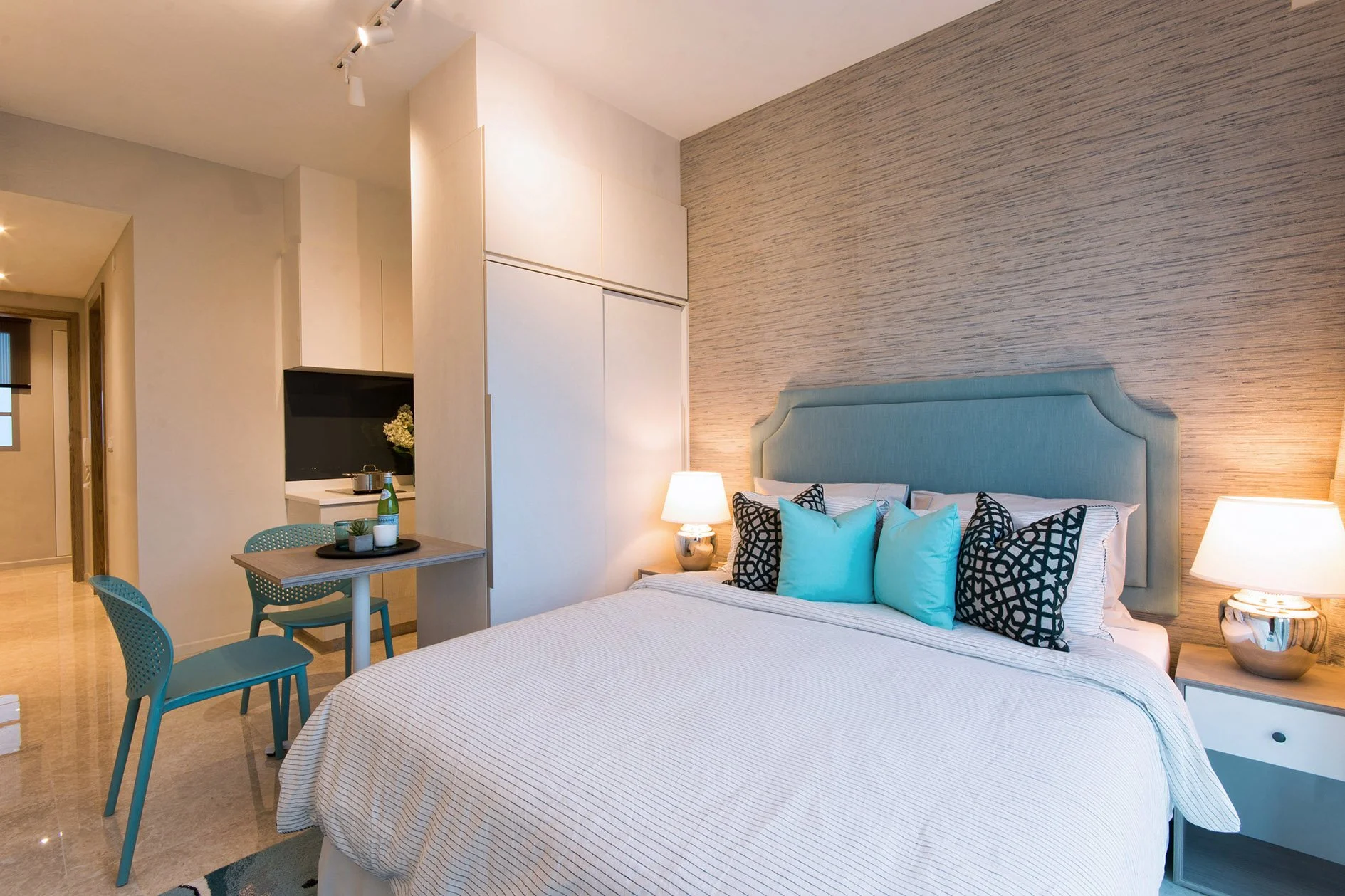 “The ensuite bedroom became a key focus. It was treated almost like a self-contained suite, incorporating a small pantry and a table beside the wardrobe to give it a sense of independence and comfort.”
